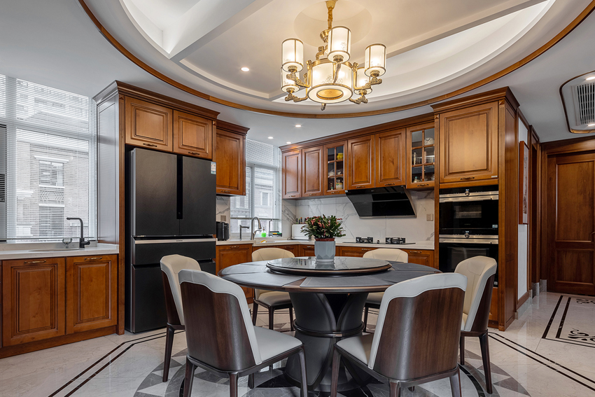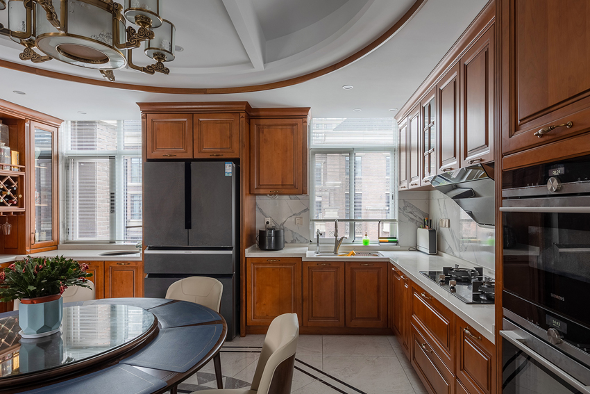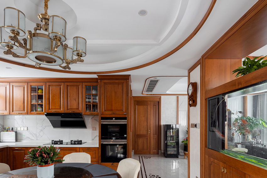 6、廚房裝修時,不要選擇木質(zhì),木質(zhì)地板難打理,養(yǎng)護(hù)起來也很麻煩,而且廚房與火水打交道,出于安全考慮,最好不要選擇木質(zhì)地板,如果使用煤氣罐,最好設(shè)計(jì)一個煤氣罐位置。