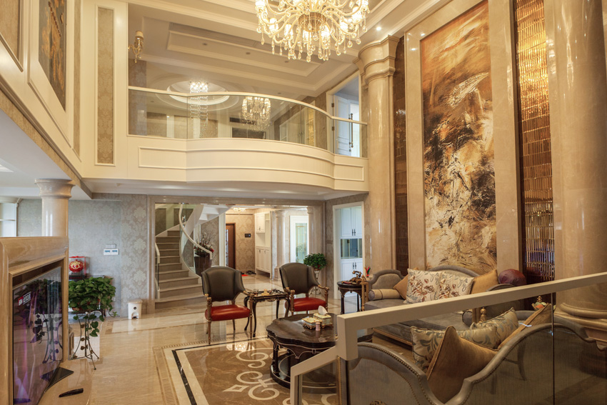 歐式古典風格 歐式古典風格追求奢華和優雅的氛圍。它以復雜的線條、浮雕、花紋和金色裝飾為特點,常見的材料有大理石、雕刻木制家具和精美的壁畫。這種風格適合對藝術和細節有追求的人,尤其適合較大的房屋和寬敞的客廳。