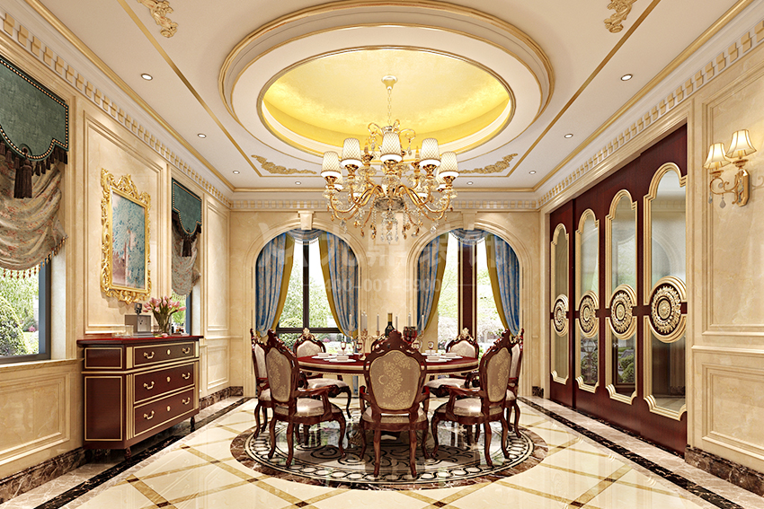 杭州杜湖名庭200㎡法式中古風裝修案例效果圖